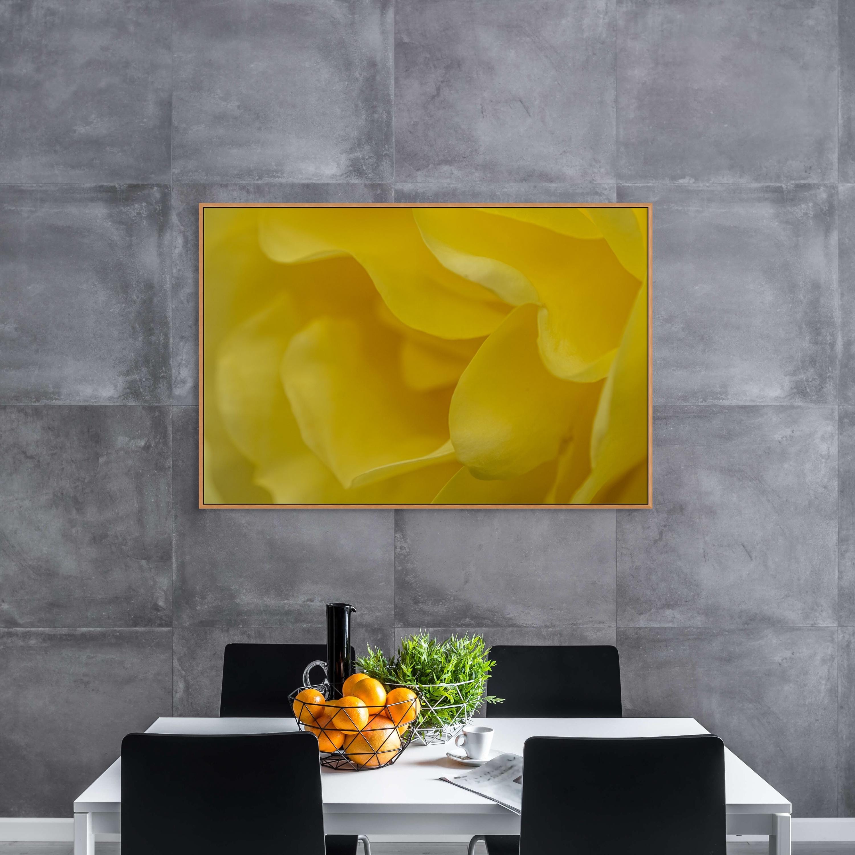 This captivating macro photograph showcases the delicate beauty of yellow rose petals in stunning detail. The vibrant color and soft textures of the petals are highlighted in this close-up shot, making it a perfect piece for adding a touch of elegance and nature to your space. Ideal for flower enthusiasts, this print brings a sense of warmth and serenity to any room.